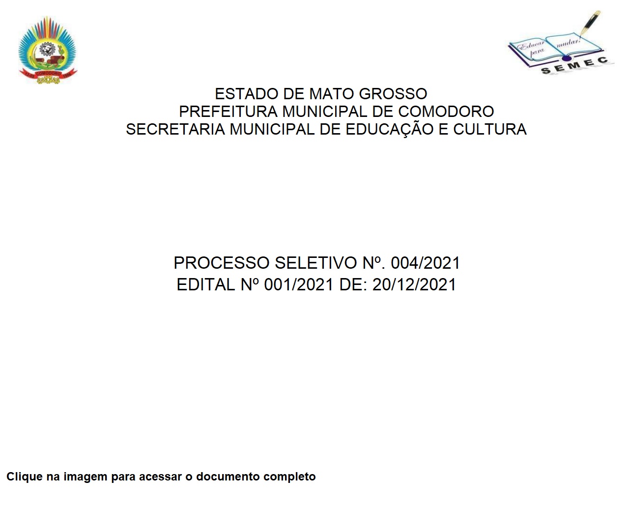 PROCESSO SELETIVO Nº. 004/2021 EDITAL Nº 001/2021 DE: 20/12/2021